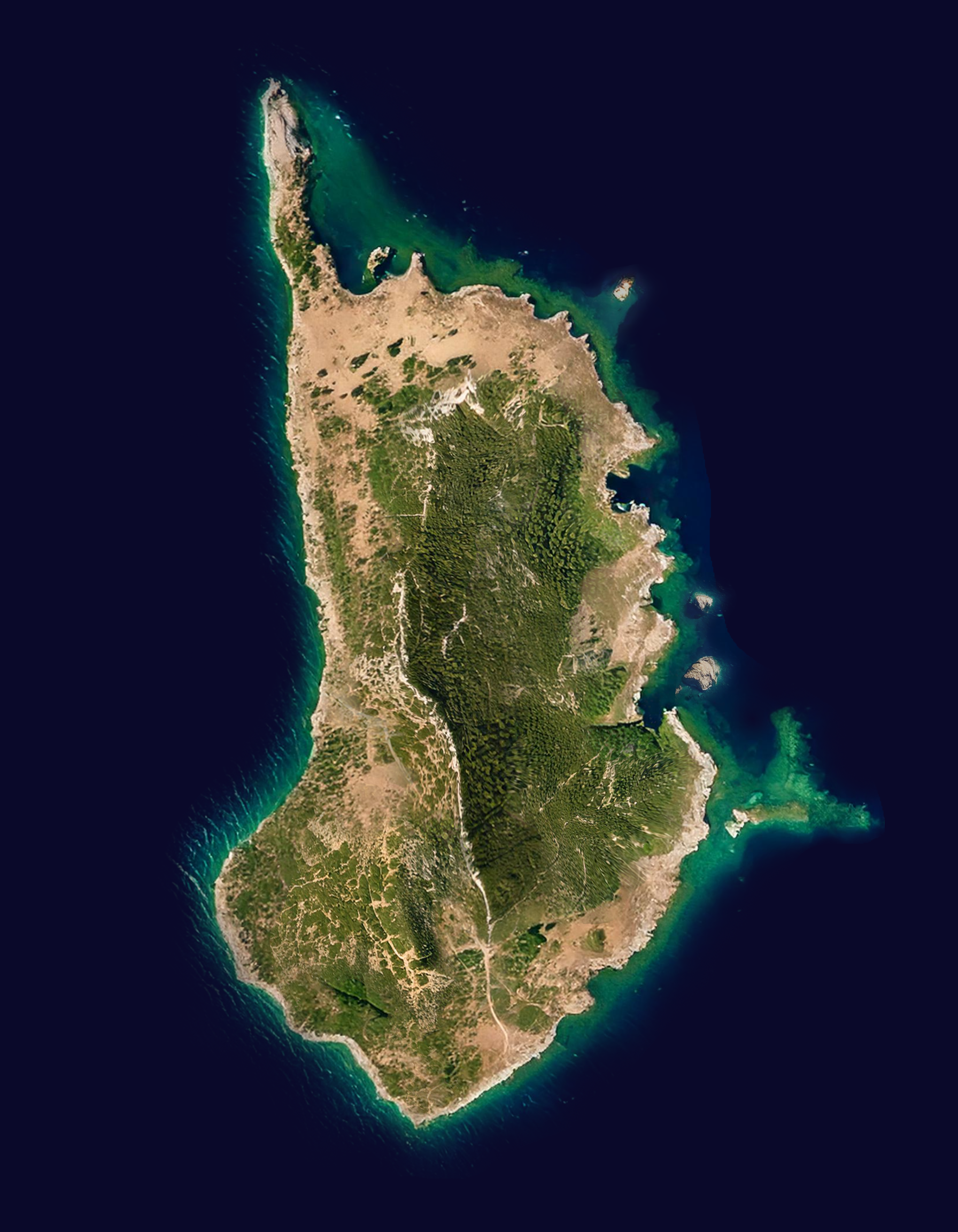 On the aesthetic level, my “satellite” maps are made first with a mock-up of the terrain stitched together from real satellite imagery and some manual painting. The next step is to generate more custom-fitting terrain textures, and here Adobe Firefly really shines. By having the generative AI iterate over my mock-up, I get great terrain samples that can then be stitched together in GIMP into a more precise, tailored landscape.